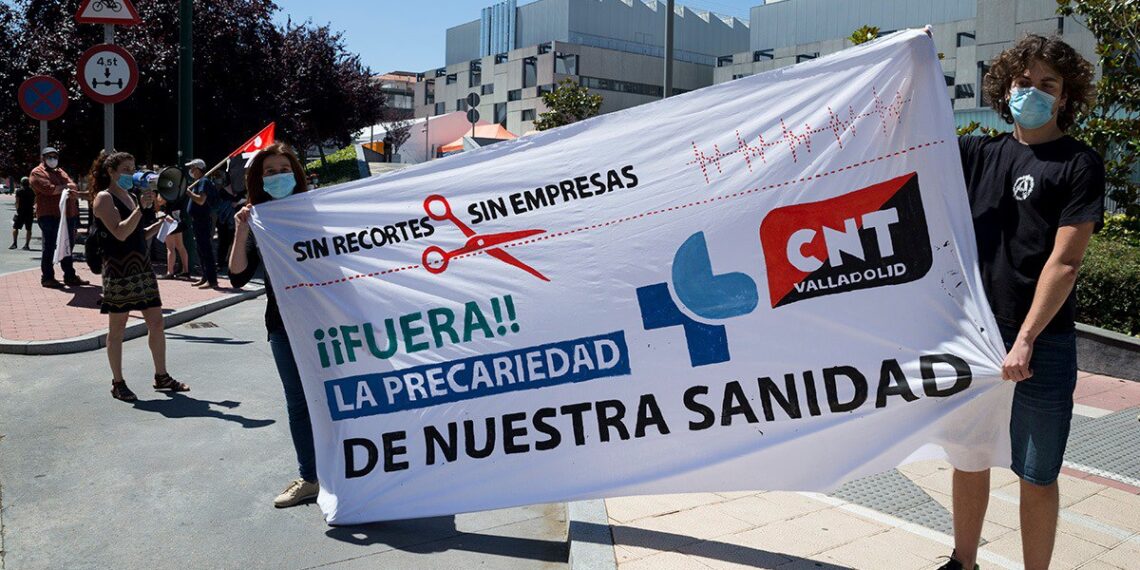 CNT Valladolid ha estado entre los colectivos y personas que respondieron a este llamamiento en nuestra provincia. Concentraciones en Laguna de Duero, junto al Hospital Clínico de Valladolid y en Traspinedo han invitado a reaccionar contra los intentos de demoler la sanidad pública, de desmantelar la atención primaria aprovechando el rio revuelto de la crisis sanitaria y de profundizar en la precariedad de quienes trabajan en el sector.