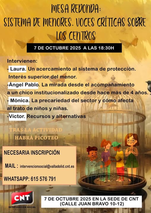 En Valladolid, mesa redonda el martes 7 de octubre para afrontar el tema. ¡Apúntate en intervenciónsocial@valladolid.cnt.es!